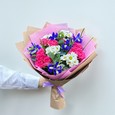 Букет из гвоздик, эустом и гортензии