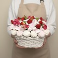Букет розовых кустовых гвоздик и роз