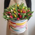 Корзинка с клубникой и тюльпанами