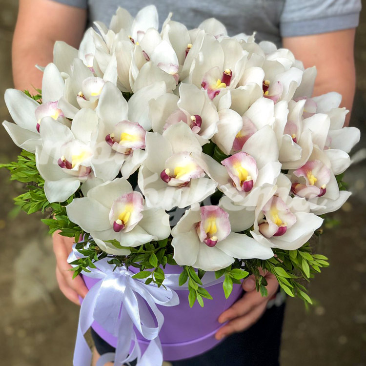 Белые орхидеи в коробке