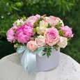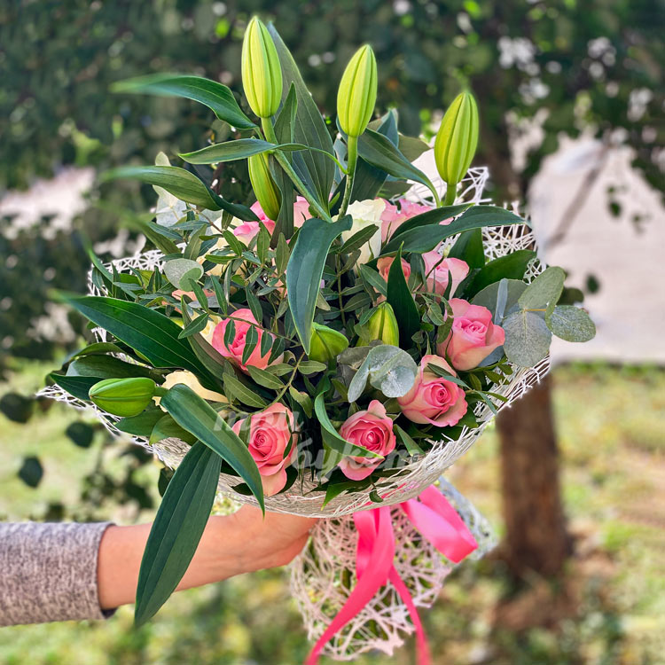 Букет белых и розовых роз с лилиями