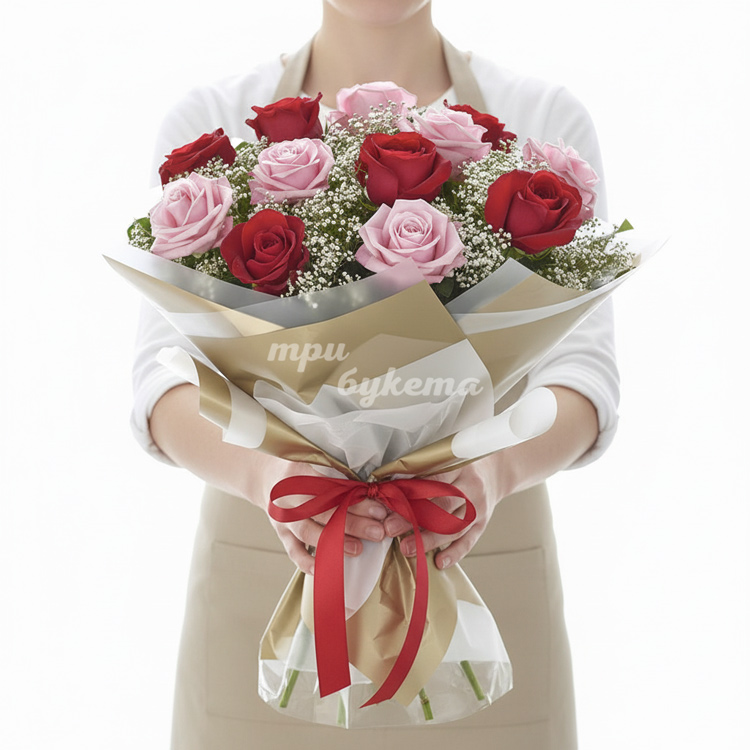 Букет из 13 разноцветных роз