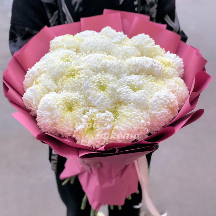 Букет из 35 пышных цветков хризантемы