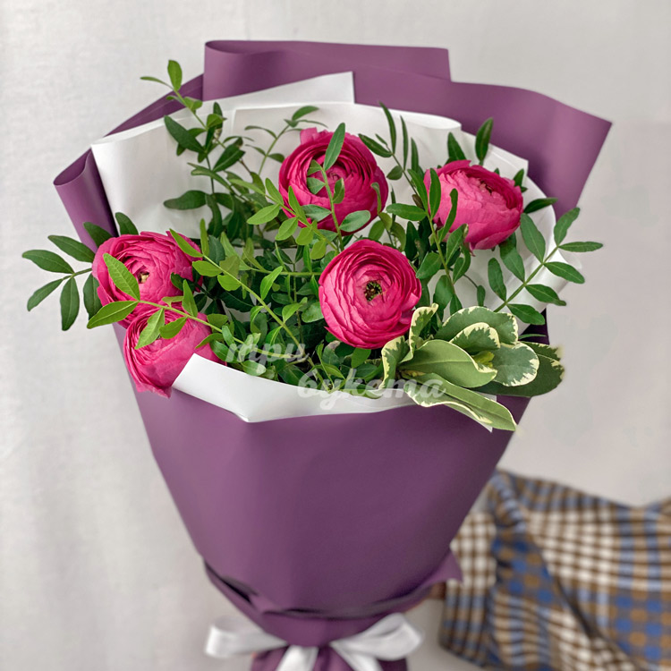 Букет из 5 розовых ранункулюсов