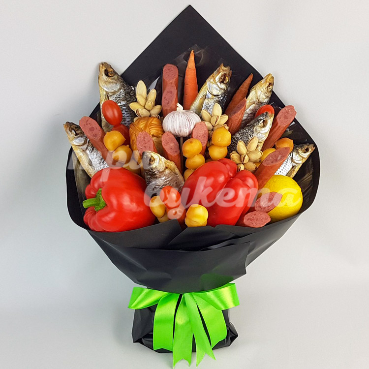 Букет из вяленой рыбы и колбасы