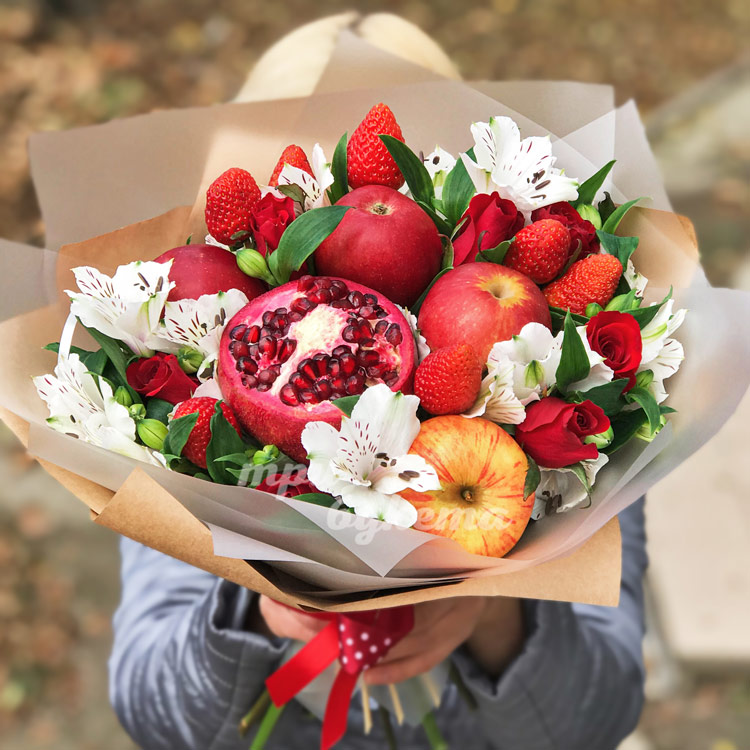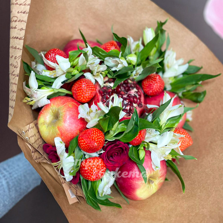 Букет из яблок и альстромерий