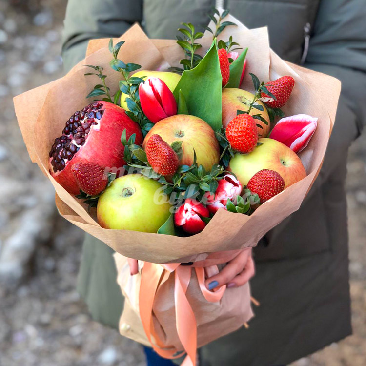 Букет из яблок и тюльпанов