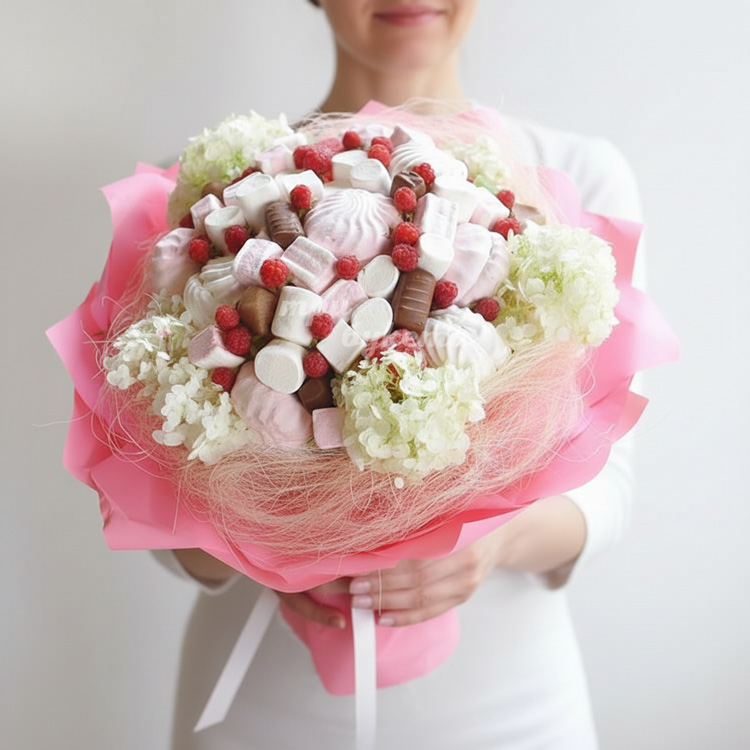Букет из зефира и малины