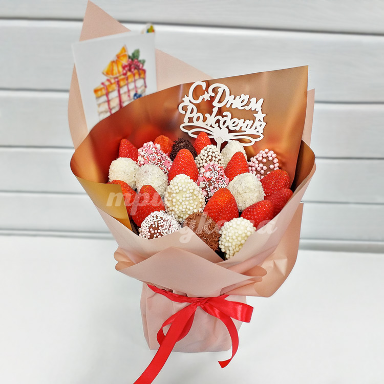 Букет клубники в шоколаде с топпером