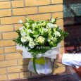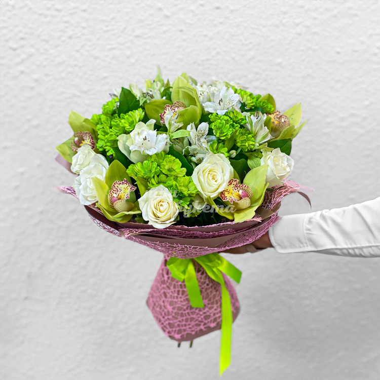 Букет зеленых хризантем и орхидей