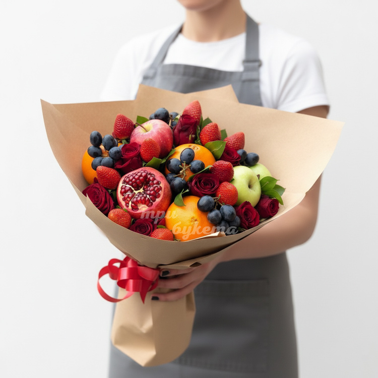 Фруктовый букет из яблок и роз