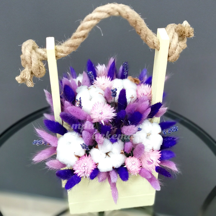 Хлопок и лаванда в деревянном ящике