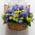 Ирисы, тюльпаны и нарциссы в корзине