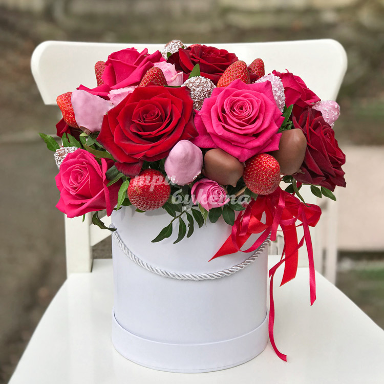 Композиция из роз и клубники