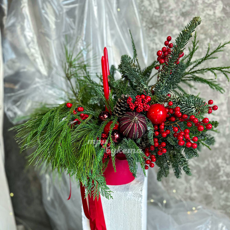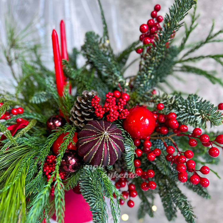 Красная новогодняя композиция со свечами