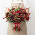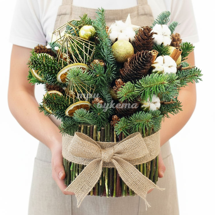 Новогодний букет из 7 шишек и хлопка