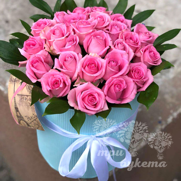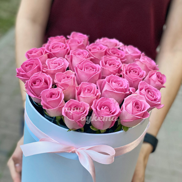 Розовый букет в шляпной коробке