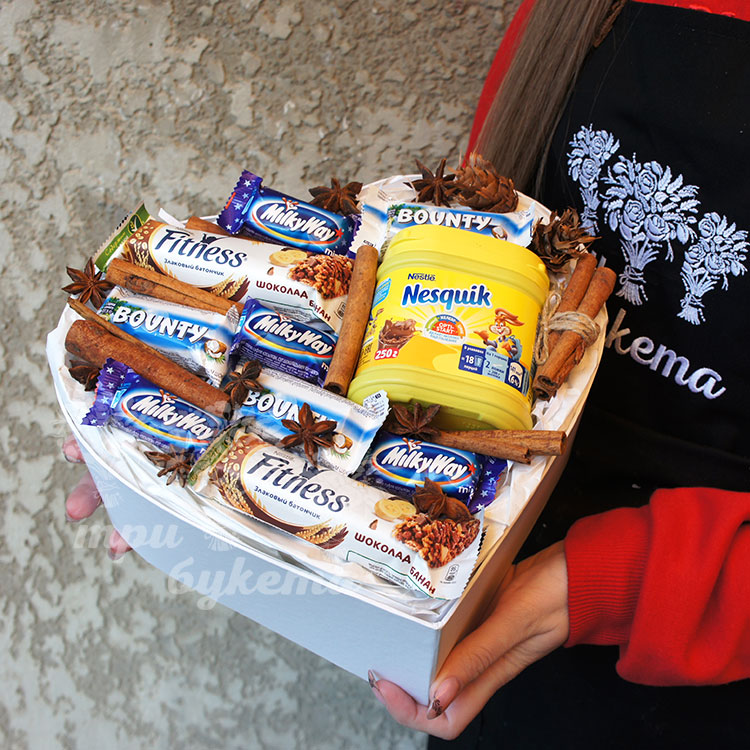 Сладкий набор с какао в виде сердца
