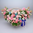 Яркая корзина гвоздик, роз и тюльпанов